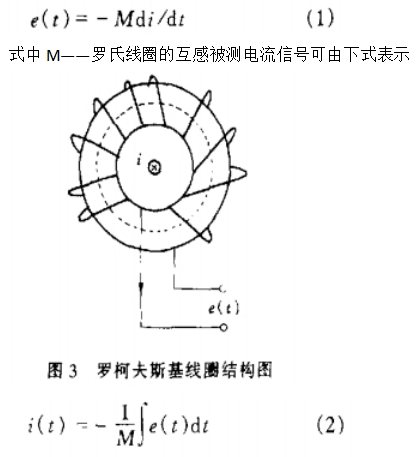 在有源電子式電流互感器中.作為一次電流采樣傳感頭的元件有很多種、有傳統(tǒng)的電磁式電流互感器、特別規(guī)劃的小信號電流互感器、分流電阻器、羅柯夫斯基線圈等。其間羅柯夫斯基線圈以其超卓的頻率響應(yīng)、高的檢測準(zhǔn)確度和結(jié)構(gòu)簡略、本錢賤價(jià)等特性而成為首選。所以依據(jù)羅柯夫斯基線圈的有源ETA也就成為最具發(fā)展?jié)摿Φ墓怆娀ジ衅鳟a(chǎn)品,它既可以用作關(guān)閉電器GIS、插接式組合電器PASS中的電流檢測設(shè)備,又可用于敞開式獨(dú)立有源ETA。羅柯夫斯基線圈是將導(dǎo)線均勻地繞在一個(gè)非磁性資料的骨架上制造而成的空心線圈,如圖3所示。載流導(dǎo)線從線圈中心穿過,當(dāng)導(dǎo)線上有電流經(jīng)過期,在線圈的兩頭將會發(fā)生一個(gè)感應(yīng)電勢e,其巨細(xì)為