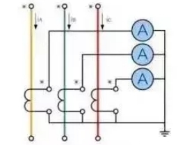 電流互感器原邊串聯(lián)、副邊并聯(lián)接線圖