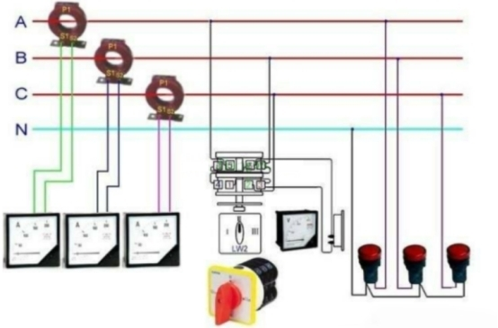 電流互感器是一種特別的變壓器,它的作用是把大電流變成標(biāo)準(zhǔn)小電流,配合檢測外表、計(jì)量外表和繼電器等設(shè)備作業(yè)。這樣可以起到擴(kuò)展外表檢測規(guī)劃,行進(jìn)電路的穩(wěn)定性和安全性的作用。電流互感器的電流接線原理圖如下圖所示,電流互感器的一次線圈串聯(lián)在一次主電路中,其二次接入的外表和繼電器的線圈也全部是串聯(lián)的。
